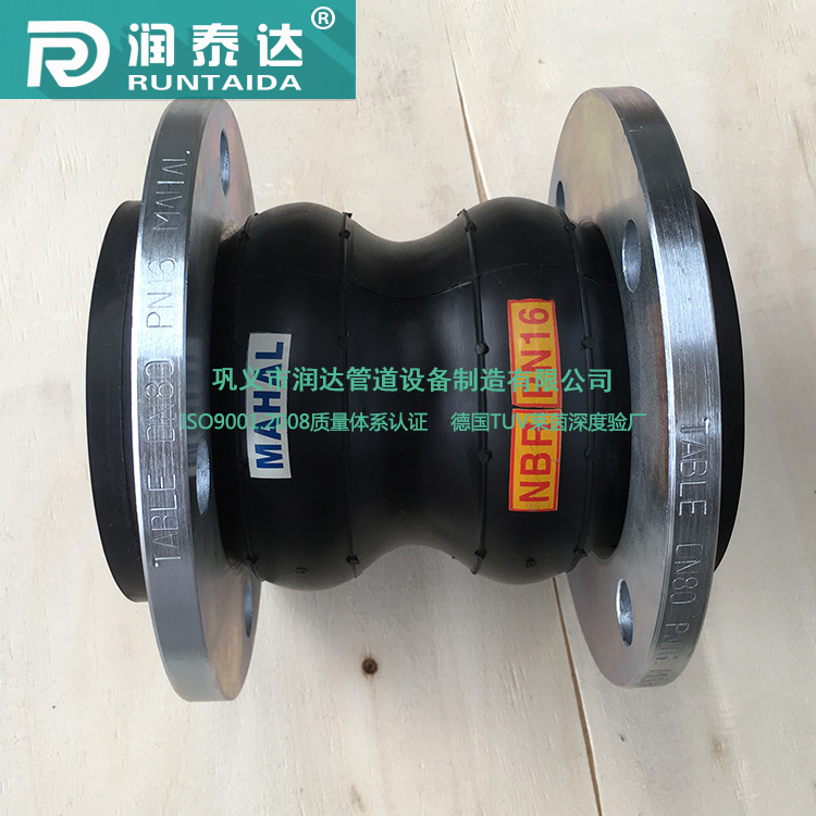 通過加長橡膠接頭支撐模具,來做到橡膠 接頭的加長,但是在制造過程中,由于橡膠膨脹節(jié)的結(jié)構(gòu)影響,會造成雙球體可曲撓橡膠接頭在制造過程中,相鄰的兩個橡膠膨脹節(jié)之間的膠量不足而導(dǎo)致橡膠膨脹節(jié)直接壁厚較薄,造成承壓能力的下降,所以在雙球體可曲撓橡膠接頭橡膠膨脹節(jié)部位,加裝金屬加強(qiáng)環(huán),可以有效的避免橡膠膨脹節(jié)在高壓環(huán)境下的破裂,同時也解決了雙球體橡膠接頭承壓能力較低的缺陷 雙球體橡膠接頭連接 一般有絲扣連接、法蘭連接和卡箍連接等方式。它的球體是由內(nèi)膠層、增強(qiáng)層有多層刮膠錦綸簾子布、外膠層復(fù)合的橡膠管組成。根據(jù)介質(zhì)的不同所采用的橡膠材質(zhì)也是不同的,其中有天然膠、丁苯膠、丁基膠、丁腈膠、三元乙丙膠、氯丁膠、硅橡膠、氟橡膠等等多種材質(zhì)。分別具有耐熱、耐酸、堿、耐腐蝕、耐磨、耐油等功能。