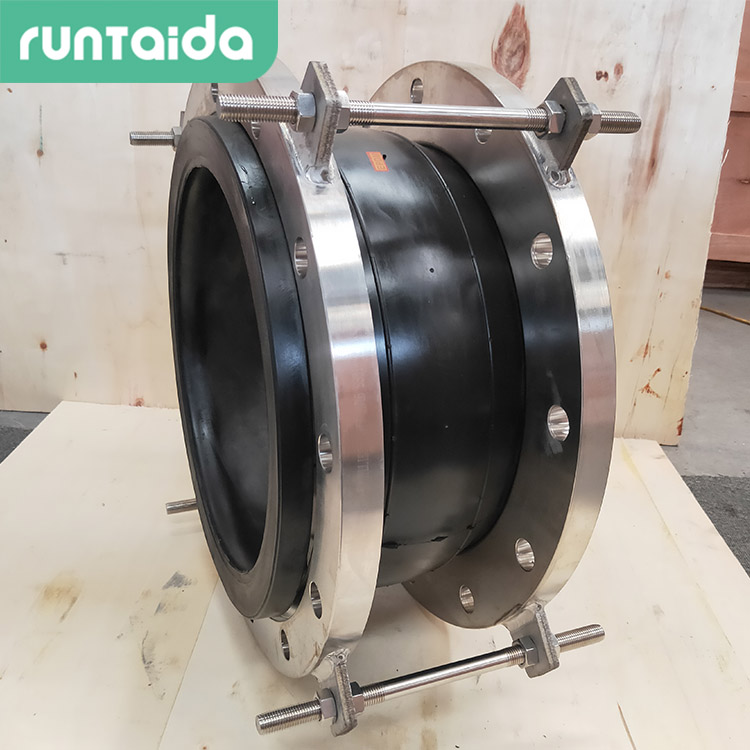 5.防拉脫限位橡膠軟接頭是在法蘭的邊緣焊接具有限位功能的耳板,上下對(duì)應(yīng),使用螺栓穿過,從而達(dá)到限位功能。